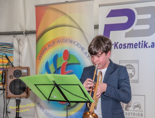Danny Hagerty, Sohn des Kunstauktionators vom Dorotheum, gab mit 11 Jahren und seiner Trompete was zum Besten,