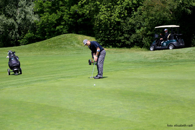 Am 9er Loch war Rene Brunhölzl positioniert um die Lochwette aufzunehmen. Die Spieler mussten von dieser Position aus das Grün hinter dem Teich treffen. Immerhin ist die Distanz 152m und der manchmal böige Wind machte einigen einen Strich durch die Rechnung. Können und Glück bildeten eine interessante Mischung.