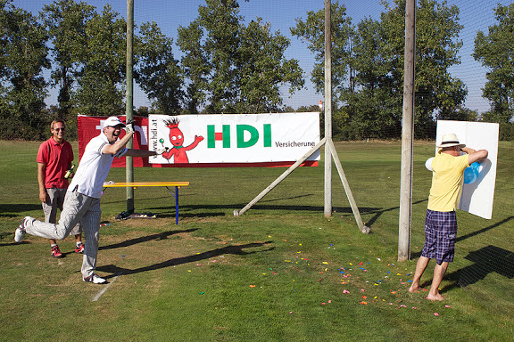 Nach reichhaltigem Frühstück ging es kurz vor Mittag mit einem Kanonenstart los. Nicht nur der gute Golfer war hier ausschlaggebend, vor jeden Abschlag wurde die Geschicklichkeit der Teams geprüft und Punkte vergeben. So zum Beispiel beim Dosenschiessen, Wurfpfeilwerfen, Labyrinth etc. So wurde neben den üblichen Siegern auch das Team mit den meisten Kombipunkten geehrt.